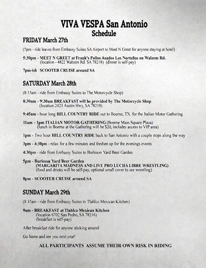 Viva Vespa San Antonio, Texas Scooter Rally March 27-29, 2026