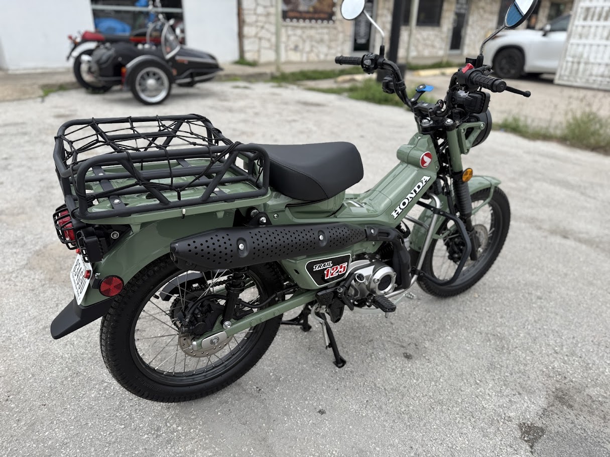 2023 Honda Trail 125 with just under 500 miles. Very clean and has some cool mods that have been added to it. Fun bike for around town or to take camping. Has a 4 speed with a automatic clutch, disc brakes front and rear, electric start with a back up kick starter. Price $3500.00 + ttl.