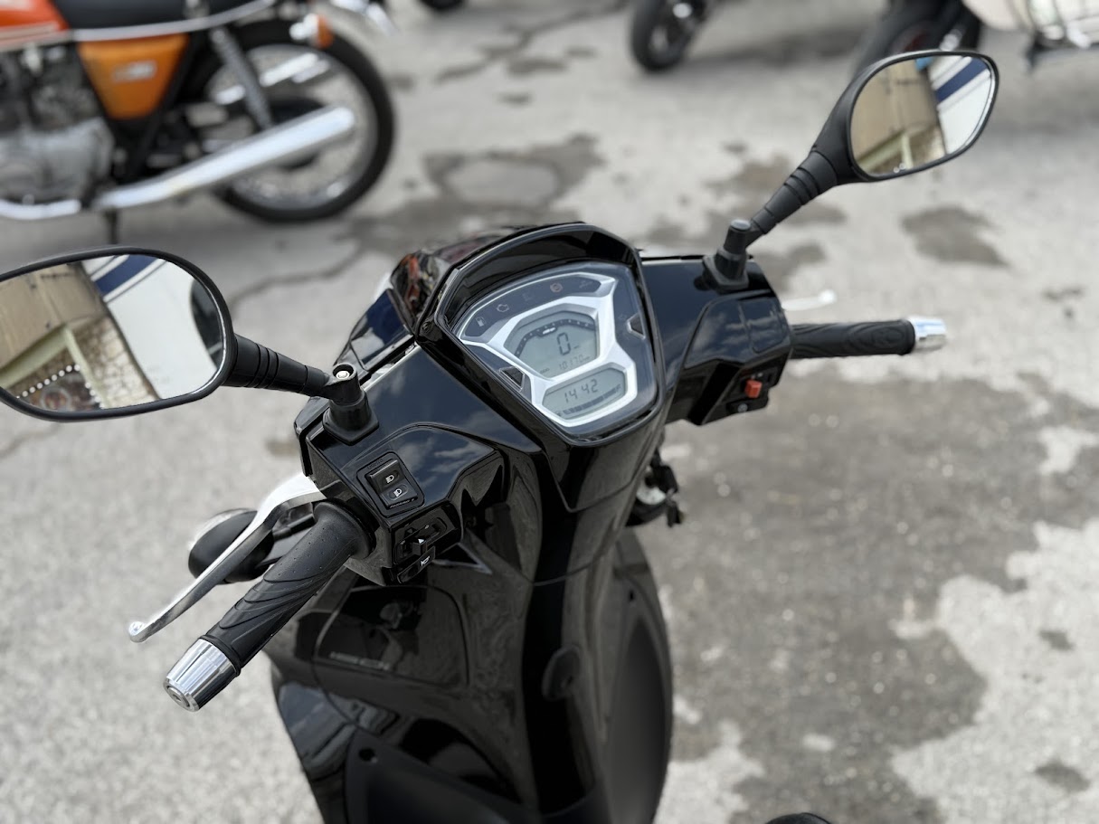 2021 Kymco People 150 Demo Model. This scooter has been one of our long time demo model. It has 10,170 miles and has been very well maintained. It is a perfect scooter for running around town on. It has a 149cc, fuel injected engine with a CVT automatic transmission. Rides on a pair of 16″ wheels with ABS disc brakes front and rear. Has some under seat storage and a small glove box in the front. Price $2195.00 + ttl.